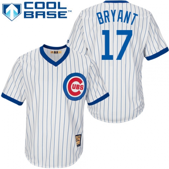 Home>MLB>Chicago Cubs>Kris Bryant>Men's Majestic Chicago Cubs #17 Kris Bryant Replica White Home Cooperstown MLB Jersey