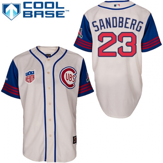 Men's Majestic Chicago Cubs #23 Ryne Sandberg Authentic Cream/Blue 1942 Turn Back The Clock MLB Jersey