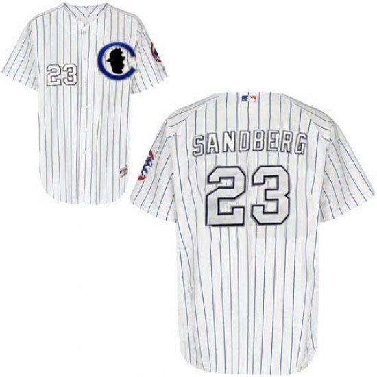 Men's Majestic Chicago Cubs #23 Ryne Sandberg Replica White Sliver NO.-3 Patch MLB Jersey