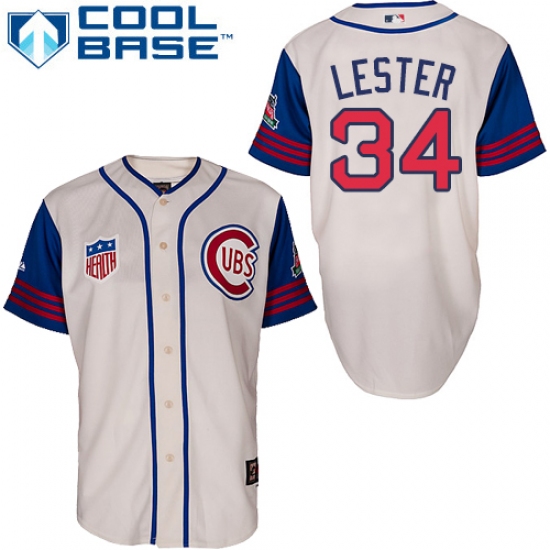 Home>MLB>Chicago Cubs>Jon Lester>Men's Majestic Chicago Cubs #34 Jon Lester Replica Cream/Blue 1942 Turn Back The Clock MLB Jersey