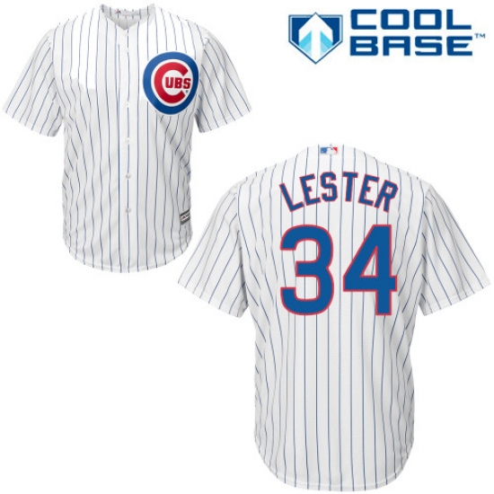 Home>MLB>Chicago Cubs>Jon Lester>Men's Majestic Chicago Cubs #34 Jon Lester Replica White Home Cool Base MLB Jersey