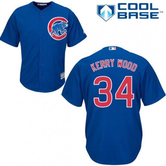 Men's Majestic Chicago Cubs #34 Kerry Wood Replica Royal Blue Alternate Cool Base MLB Jersey