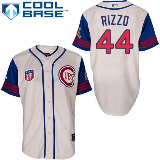 Home>MLB>Chicago Cubs>Anthony Rizzo>Men's Majestic Chicago Cubs #44 Anthony Rizzo Replica Cream/Blue 1942 Turn Back The Clock MLB Jersey