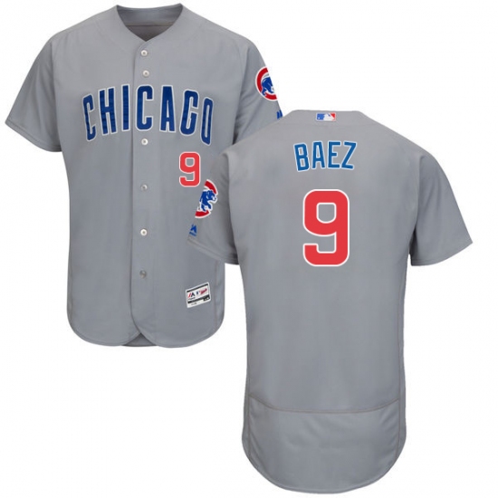 Home>MLB>Chicago Cubs>Javier Baez>Men's Majestic Chicago Cubs #9 Javier Baez Grey Road Flex Base Authentic Collection MLB Jersey