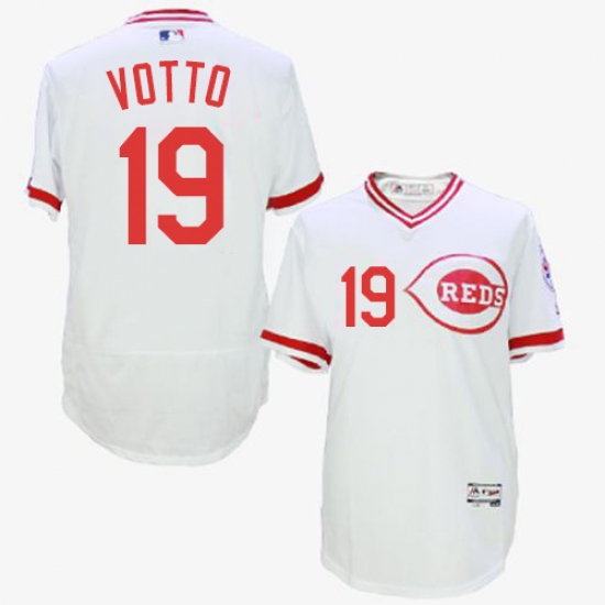 Home>MLB>Cincinnati Reds>Joey Votto>Men's Majestic Cincinnati Reds #19 Joey Votto White Flexbase Authentic Collection Cooperstown MLB Jersey