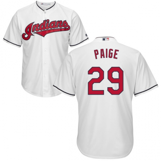 Home>MLB>Cleveland Indians>Satchel Paige>Men's Majestic Cleveland Indians #29 Satchel Paige Replica White Home Cool Base MLB Jersey