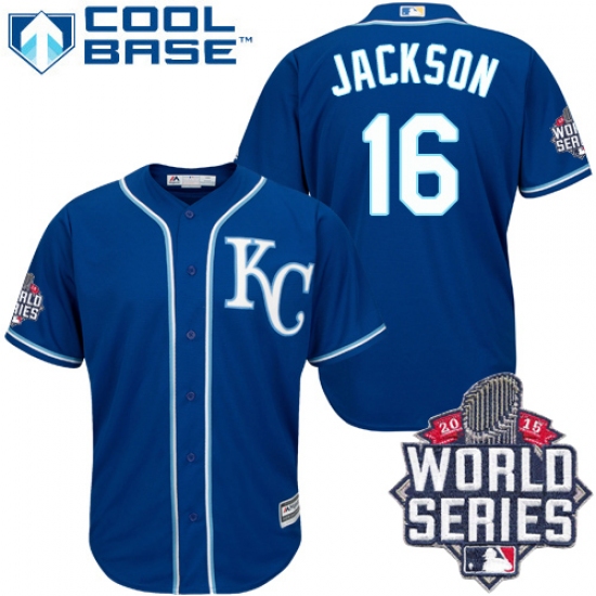 Home>MLB>Kansas City Royals>Bo Jackson>Men's Majestic Kansas City Royals #16 Bo Jackson Authentic Blue Alternate 2 Cool Base 2015 World Series Patch MLB Jersey