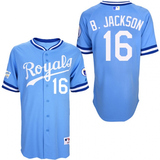 Home>MLB>Kansas City Royals>Bo Jackson>Men's Majestic Kansas City Royals #16 Bo Jackson Authentic Light Blue 1985 Turn Back The Clock MLB Jersey