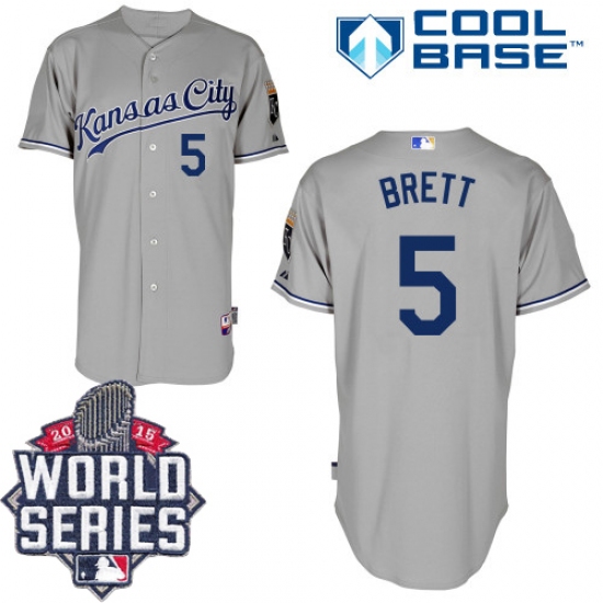 Men's Majestic Kansas City Royals #5 George Brett Authentic Grey Road Cool Base 2015 World Series