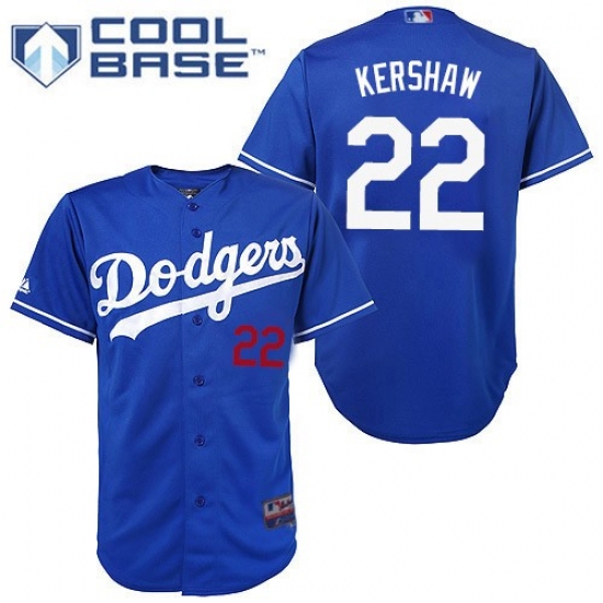 Home>MLB>Los Angeles Dodgers>Clayton Kershaw>Men's Majestic Los Angeles Dodgers #22 Clayton Kershaw Replica Royal Blue Cool Base MLB Jersey