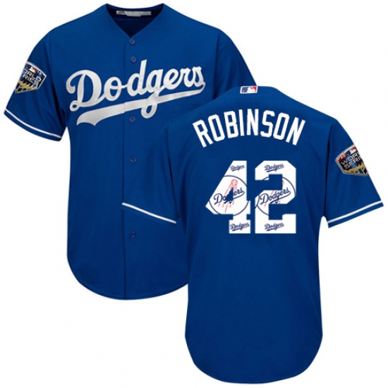 Men's Majestic Los Angeles Dodgers #42 Jackie Robinson Authentic Royal Blue Team Logo Fashion Cool Base 2018 World Series MLB Jersey