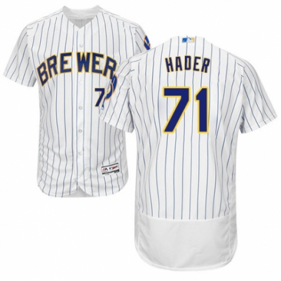 >Men's Majestic Milwaukee Brewers #71 Josh Hader White Home Flex Base Authentic Collection MLB Jersey