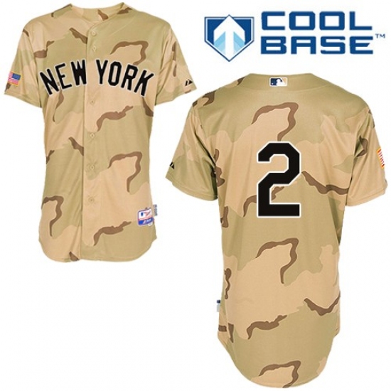 Men's Majestic New York Yankees #2 Derek Jeter Authentic Camo Commemorative Military Day Cool Base MLB Jersey