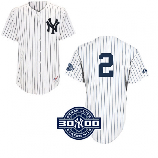 Men's Majestic New York Yankees #2 Derek Jeter Replica White W/3000 Hits Patch MLB Jersey