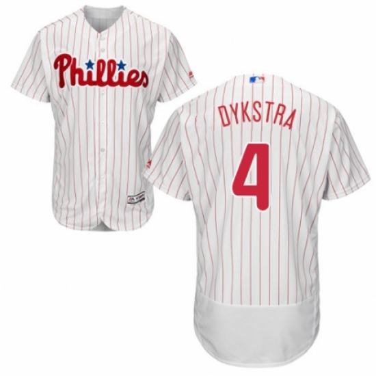 Men's Majestic Philadelphia Phillies #4 Lenny Dykstra White Home Flex Base Authentic Collection MLB Jersey