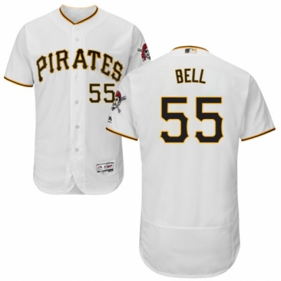 >Men's Majestic Pittsburgh Pirates #55 Josh Bell White Home Flex Base Authentic Collection MLB Jersey