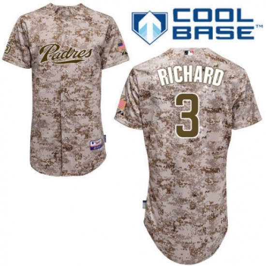 >Men's Majestic San Diego Padres #3 Clayton Richard Authentic Camo Alternate 2 Cool Base MLB Jersey
