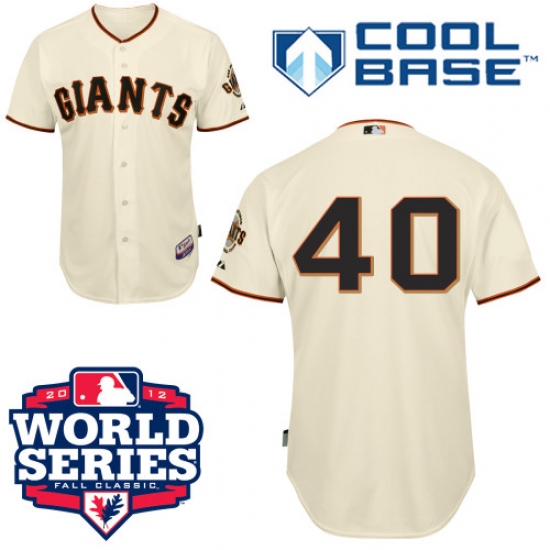 Men's Majestic San Francisco Giants #40 Madison Bumgarner Replica Cream Cool Base 2012 World Series Patch MLB Jersey