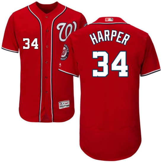 Home>MLB>Washington Nationals>Bryce Harper>Men's Majestic Washington Nationals #34 Bryce Harper Red Alternate Flex Base Authentic Collection MLB Jersey