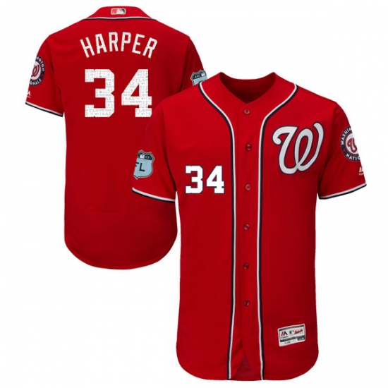 Home>MLB>Washington Nationals>Bryce Harper>Men's Majestic Washington Nationals #34 Bryce Harper Scarlet 2017 Spring Training Authentic Collection Flex Base MLB Jersey