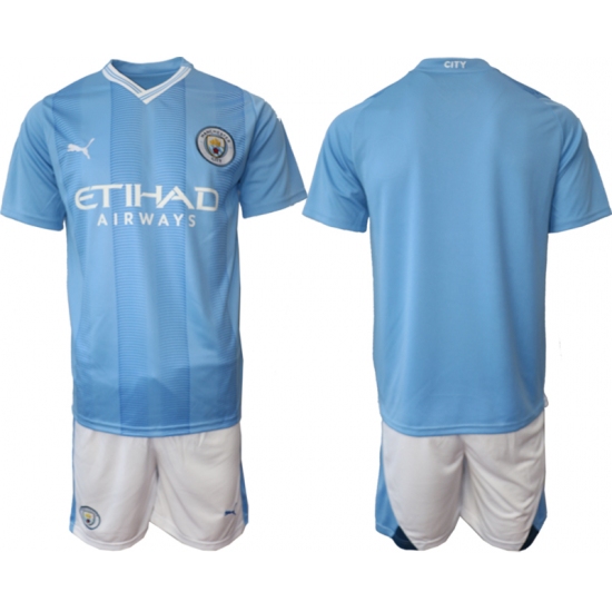 Kids Manchester City Blank 2023-24 Blue Home Soccer Jersey
