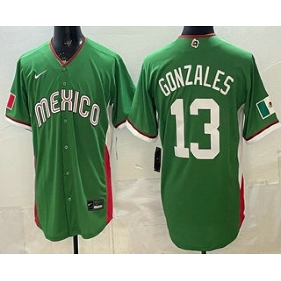 Men's Mexico #13 Nick Gonzales Green 2026 World Baseball Classic Cool Base Jersey