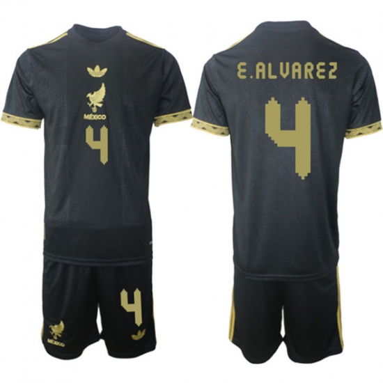 >Men's Mexico #4 Edson Alvarez Black Gold 25-26 Soccer Jersey Suit