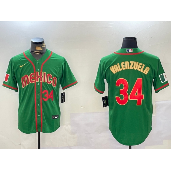 >Men's Mexico Baseball #34 Fernando Valenzuela Number 2023 Green Gold World Classic Stitched Jersey