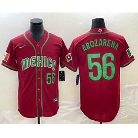 >Men's Mexico Baseball #56 Randy Arozarena Number 2023 Red World Classic Stitched Jerseys