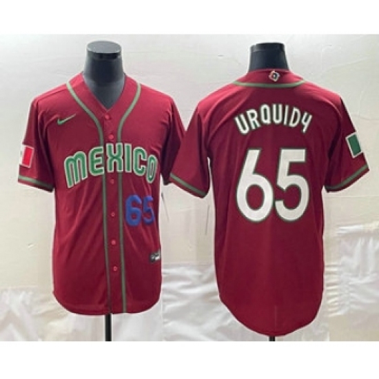 >Mens Mexico Baseball #65 Giovanny Gallegos Number 2023 Red World Classic Stitched Jersey