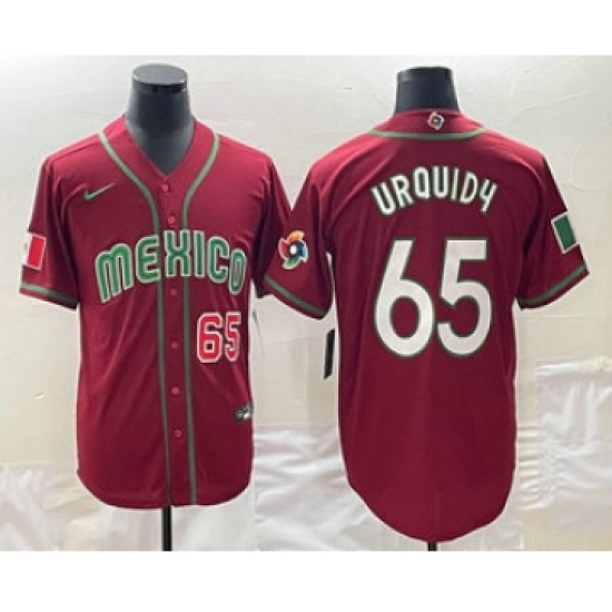 Men's Mexico Baseball #65 Giovanny Gallegos Number 2023 Red World Classic Stitched Jersey1