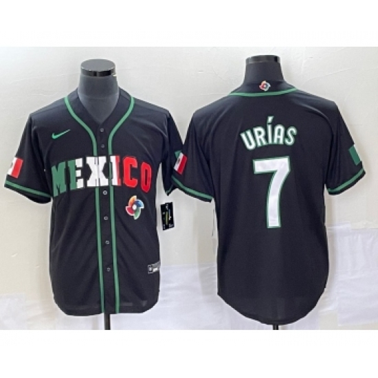 >Men's Mexico Baseball #7 Julio Urias 2023 Black White World Classic Stitched Jersey 1