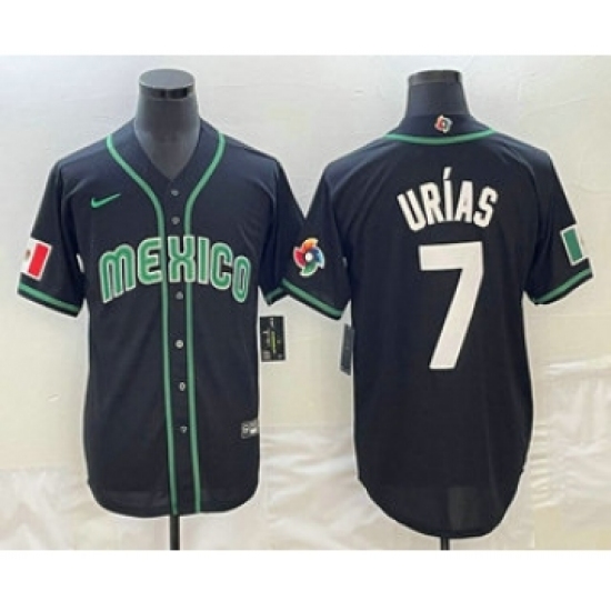 Men's Mexico Baseball #7 Julio Urias 2023 Black White World Classic Stitched Jersey