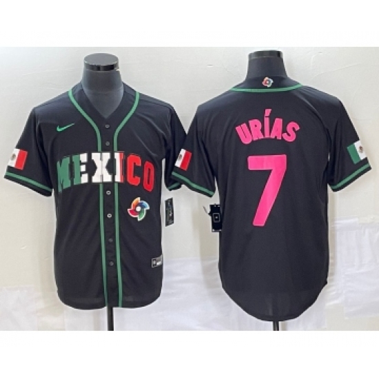 Men's Mexico Baseball #7 Julio Urias 2023 Black World Classic Stitched Jersey