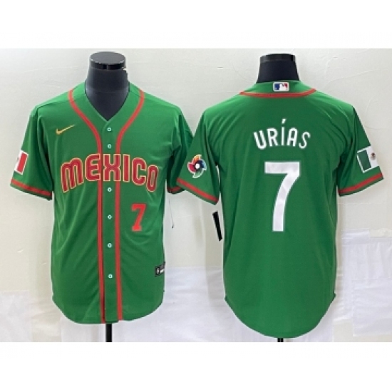 Men's Mexico Baseball #7 Julio Urias Number 2023 Green World Classic Stitched Jersey5