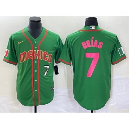 >Men's Mexico Baseball #7 Julio Urias Number 2023 Green World Classic Stitched Jersey7