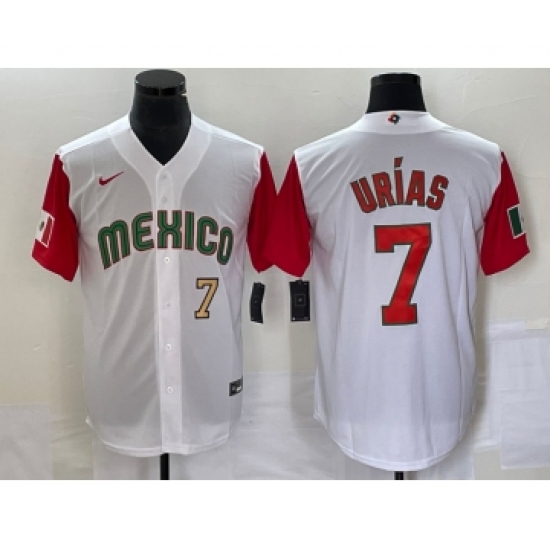 >Men's Mexico Baseball #7 Julio Urias Number 2023 White Red World Classic Stitched Jersey 18