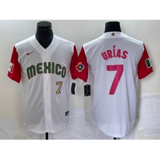 Men's Mexico Baseball #7 Julio Urias Number 2023 White World Baseball Classic Stitched Jersey