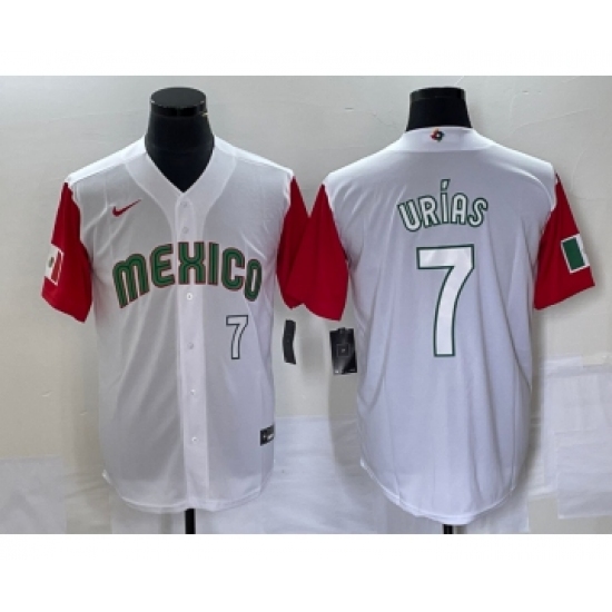 Men's Mexico Baseball #7 Julio Urias Number 2023 White Red World Classic Stitched Jersey 36