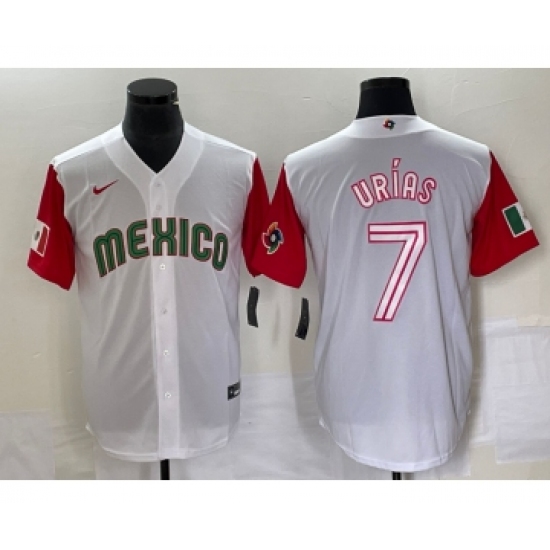 >Men's Mexico Baseball #7 Julio Urias Number 2023 White Red World Classic Stitched Jersey46