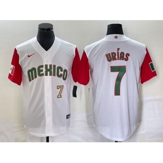 Men's Mexico Baseball #7 Julio Urias Number 2023 White Red World Classic Stitched Jersey50