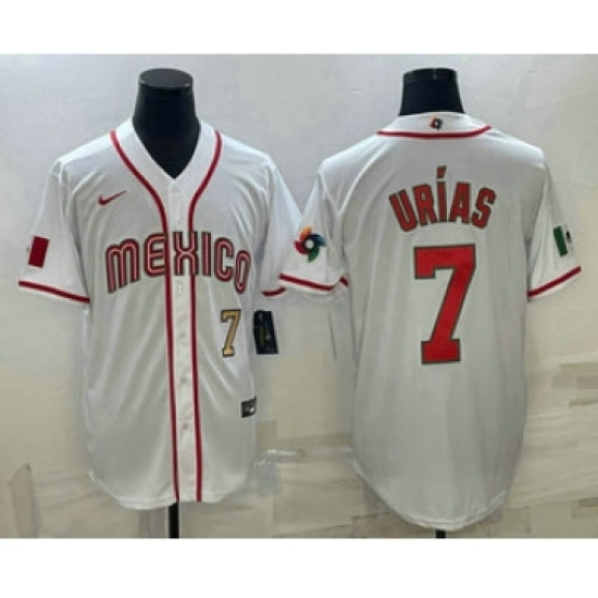 Men's Mexico Baseball #7 Julio Urias Number 2023 White World Baseball Classic Stitched Jersey3