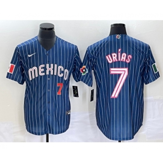 Men's Mexico Baseball #7 Julio Urias Number Navy Blue Pinstripe 2020 World Series Cool Base Nike Jersey