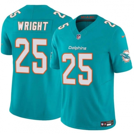 >Men's Miami Dolphins #25 Jaylen Wright Aqua 2024 F.U.S.E Vapor Limited Football Stitched Jersey