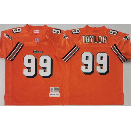 Men's Miami Dolphins #99 Jason Taylor Orange Throwback Stitched Football Jersey