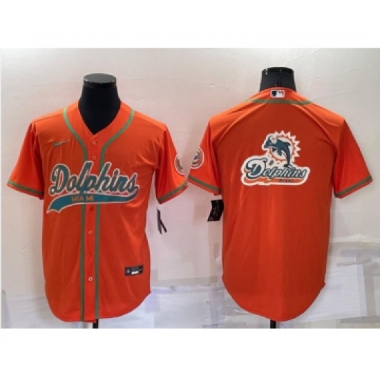 Men's Miami Dolphins Orange Team Big Logo With Patch Cool Base Stitched Baseball Jersey