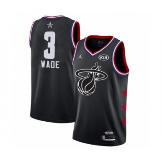 >Men's Miami Heat #3 Dwyane Wade Swingman Black 2019 All-Star Game Basketball Jersey
