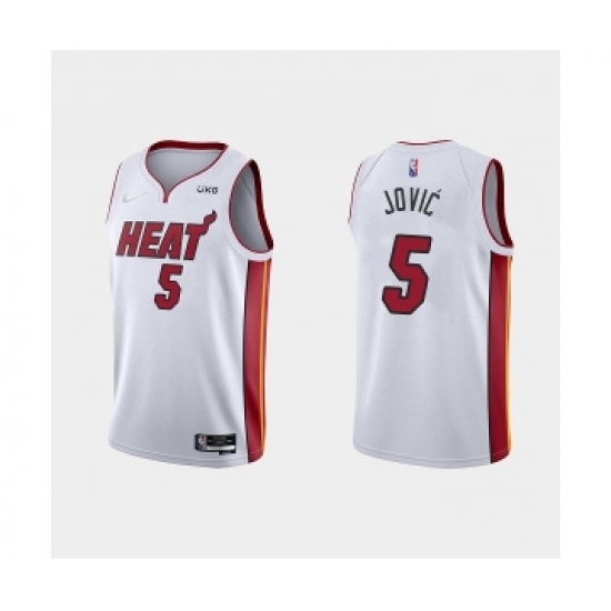 Men's Miami Heat #5 Nikola Jovic 2022 White Stitched Basketball Jersey