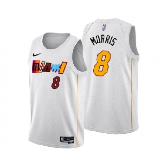 Men's Miami Heat #8 Markieff Morris 2022-23 White City Edition Stitched Jersey