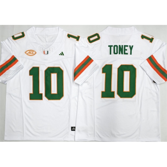 Men's Miami Hurricanes #10 Malachi Toney White F.U.S.E. 2026 Stitched Football Jersey